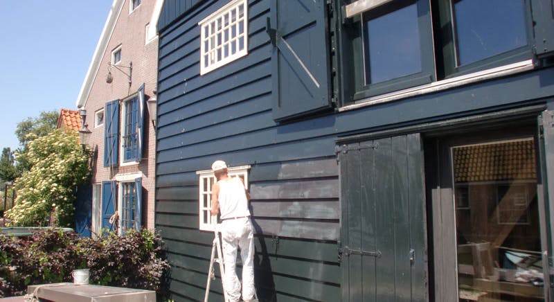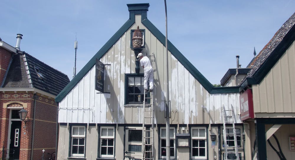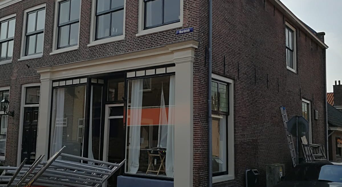 Reparatie en restauratie van oud pand in Monnickendam. De staande luiken waren rot, maar evengoed zijn ze met veel werk hersteld. Het pand is weer netjes opgeknapt.